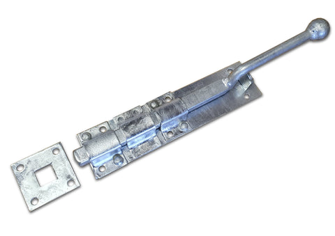 "Monkey Tail" Upwards locking bolt for garage doors. Epoxy Black and Galvanised Silver